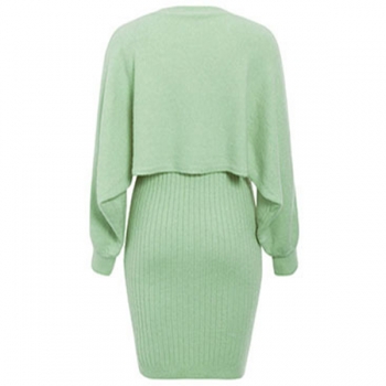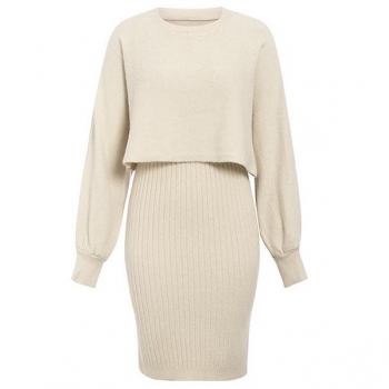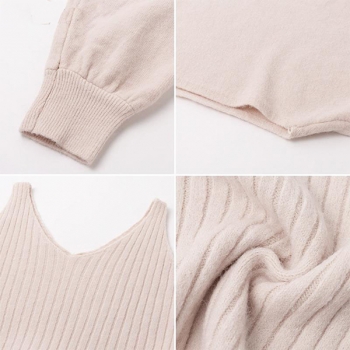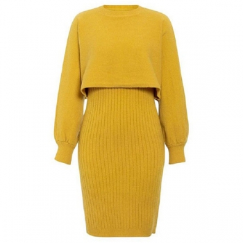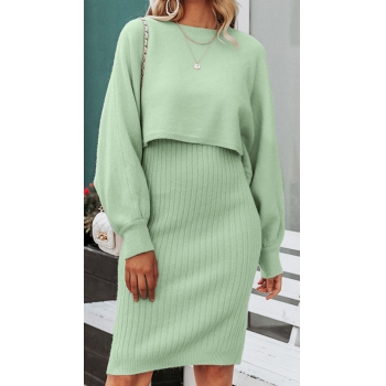 Fashion Elastic Knitted Two-piece Set Consist of Crop Sweater and Ribbed Tank Dress