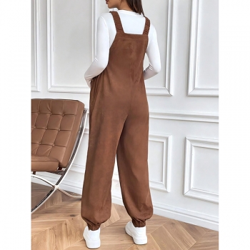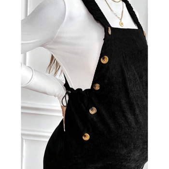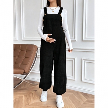 Fashion Front Patch Pockets Loose Adjustable Waist Corduroy Maternity Suspender Jumpsuit
