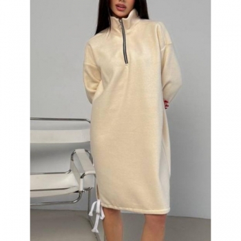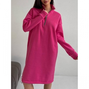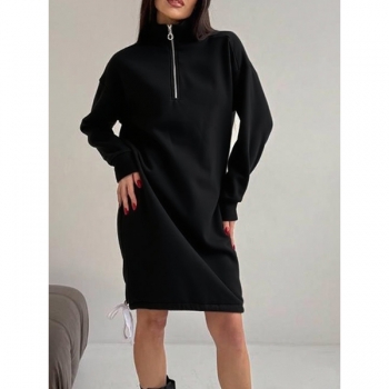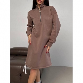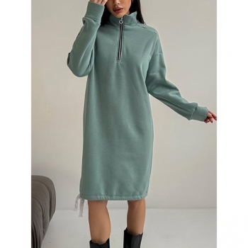 Fashion Half-zipper Stand Collar Long Sleeve Side Drawstring Sweatshirt Dress