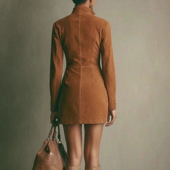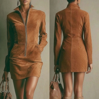 Fashion Half-zipper Stand Collar Long Sleeve Side Pockets Bodycon Dress