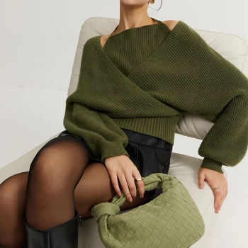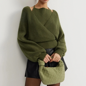 Fashion Halter Neck Batwing Long Sleeve Mock Two-piece Sweater