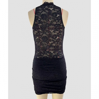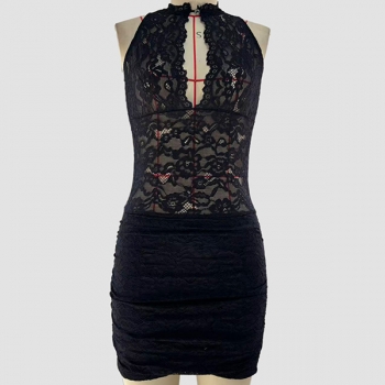 Fashion Halterneck Sleeveless Lace Spliced Bodycon Dress