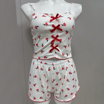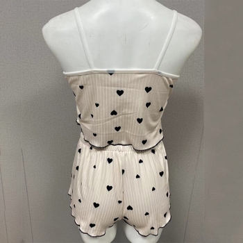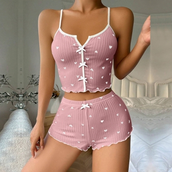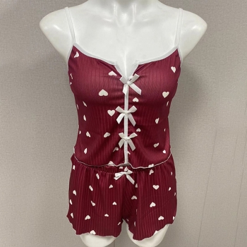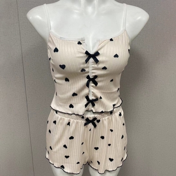 Fashion Heart Printed Bowknot Two-piece Nightwear Set
