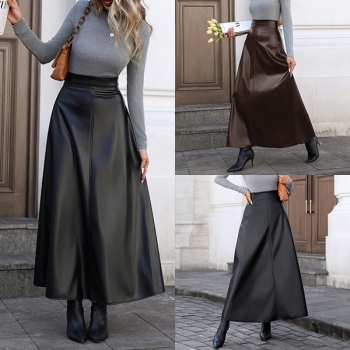 Fashion High-rise Artificial Leather PU Maxi Skirt