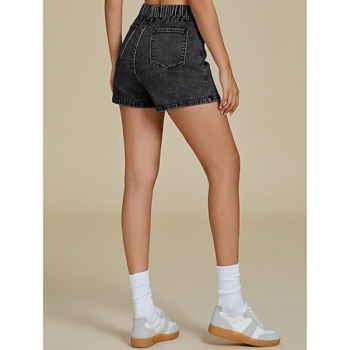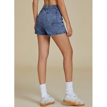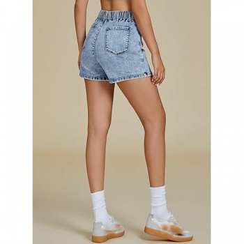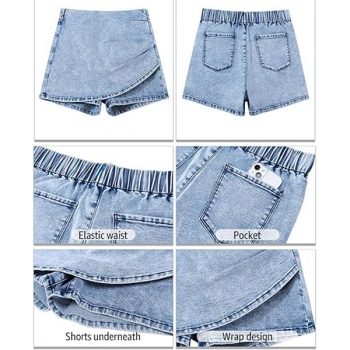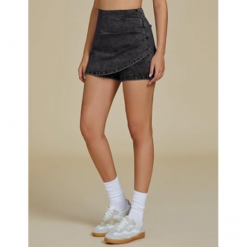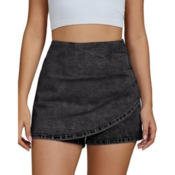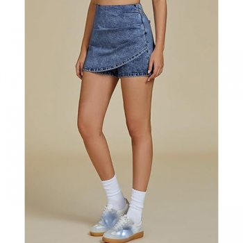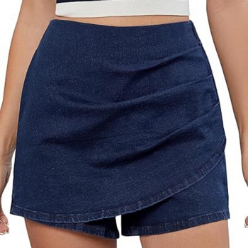 Fashion High-rise Ruched Irregular Hemline Old-washed Denim Skorts