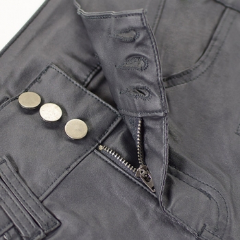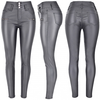 Fashion High-Waist Slim Fit Stretch PU Artificial Leather Gray Pants