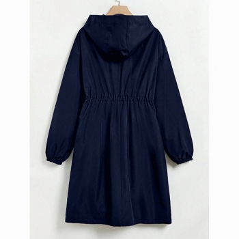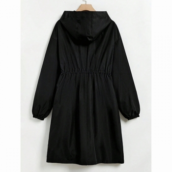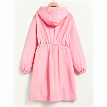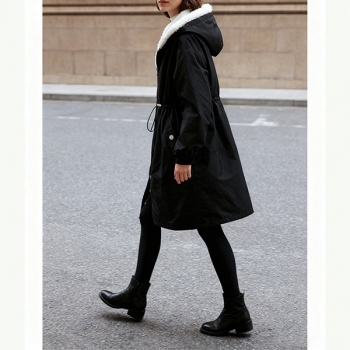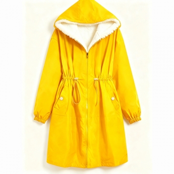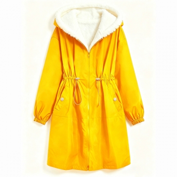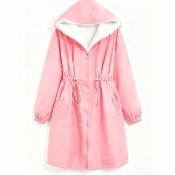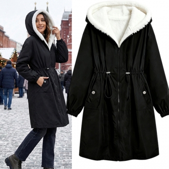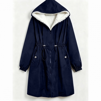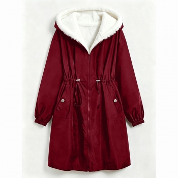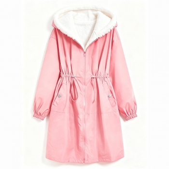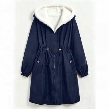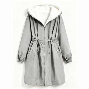 Fashion Hooded Long Sleeve Drawstring Waist Side Pockets Warm Plush Lined Jacket