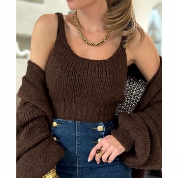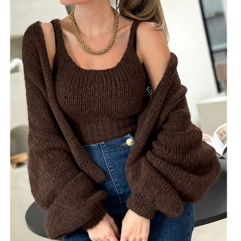Fashion Knitted Two-piece Set Consist of Cami Top and Cardigan