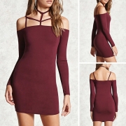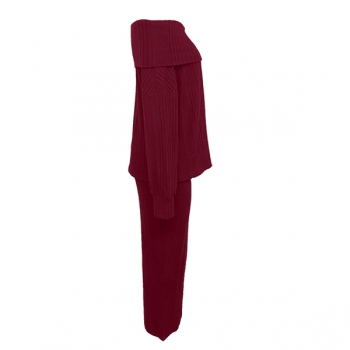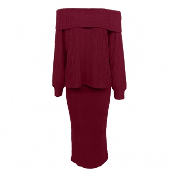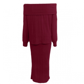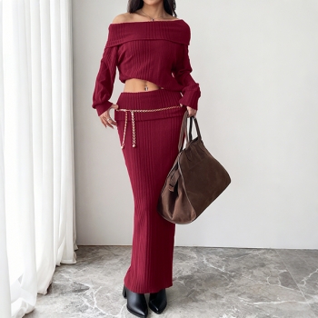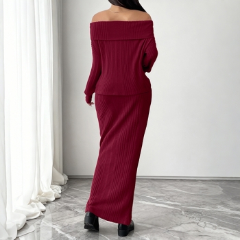 Fashion Knitted Two-piece Set Consist of Off-the-shoulder Sweater and Maxi Skirt