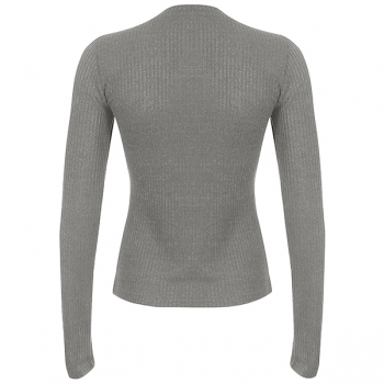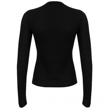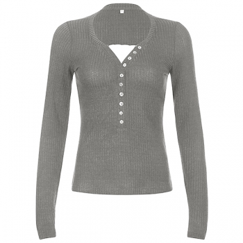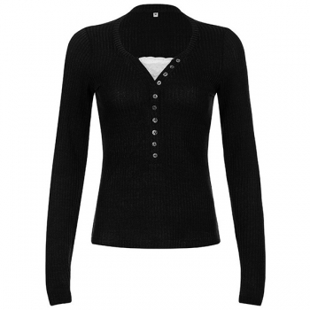 Fashion Lace Spliced Button Long Sleeve Ribbed Shirt
