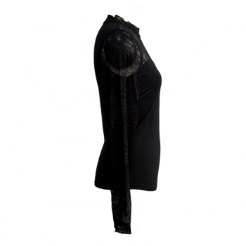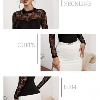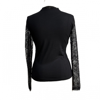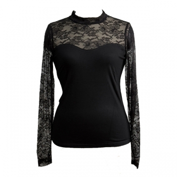 Fashion Lace Spliced Crew Neck Long Sleeve Shirt