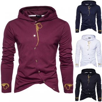 Fashion Long Sleeve Oblique-button Men's Hooded Sweatshirt