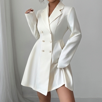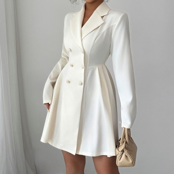 Fashion Notch Lapel V-neck Double-breasted Long Sleeve Suit Dress