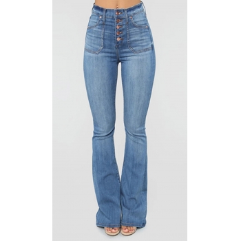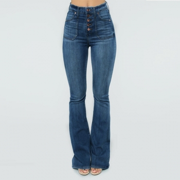 Fashion Old-washed High Waist Wide-leg Denim Jeans