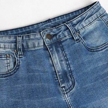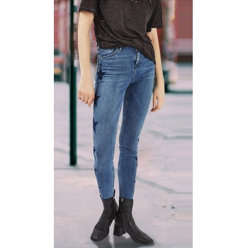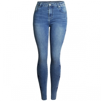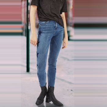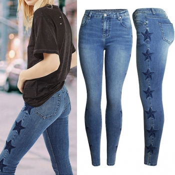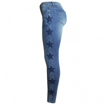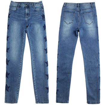 Fashion Old-washed Star Embroidery Slim Fit Mid-rise Skinny Denim Jeans