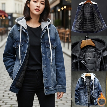 Fashion Old-washed Unisex Denim Jacket with Detachable Hooded and Detachable Warm Lined(Size Run Small)