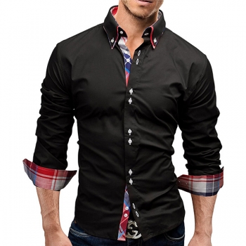 Fashion Plaid Spliced Long Sleeve POLO Collar Men's Shirt