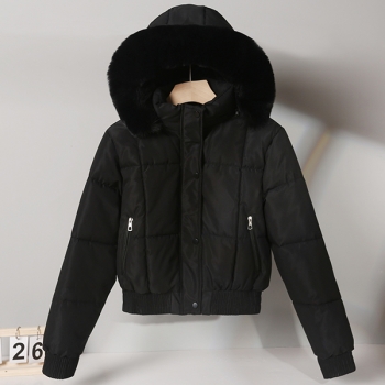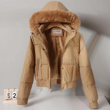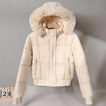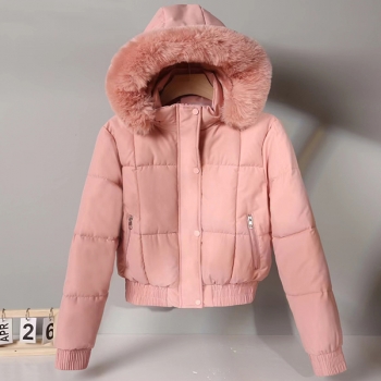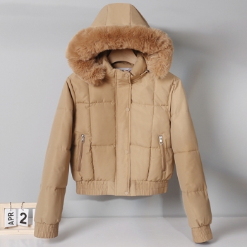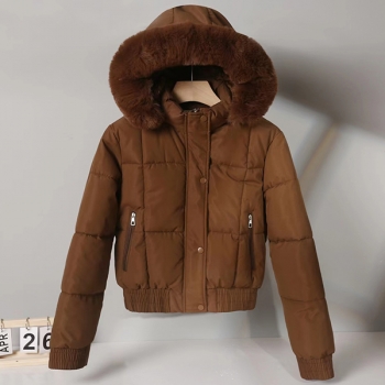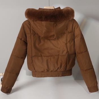 Fashion Plush Spliced Hooded Long Sleeve Quilted Crop Coat
