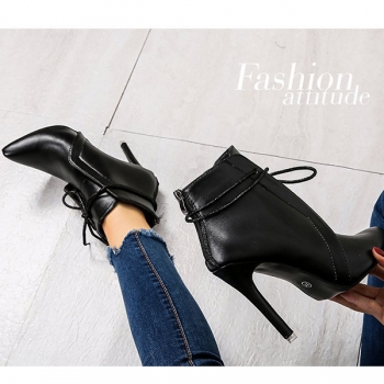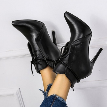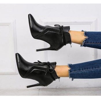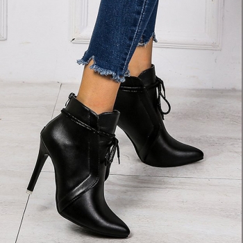 Fashion Pointed-toe Self-tie High-heeled Artificial Leather PU Ankle Boots