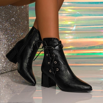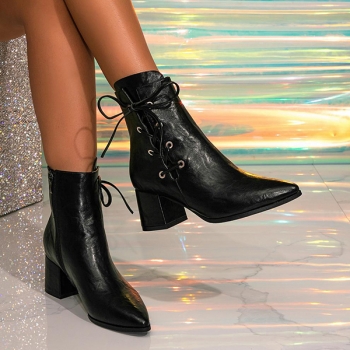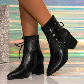 Fashion Pointed-toe Side Lace-up Block Heeled Ankle Boots