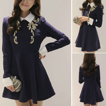 Fashion POLO Collar Long Sleeve Slim Fit Bottoming Dress
