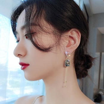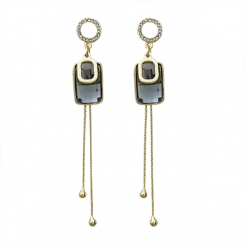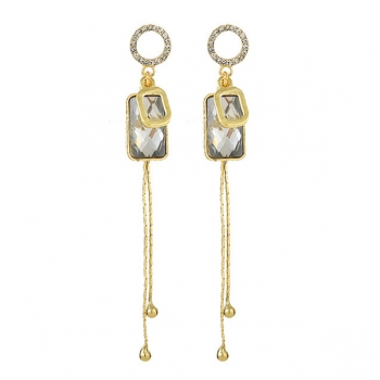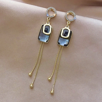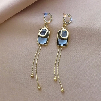Fashion Rhinestone Inlaid Rectangle & Tassel Pendant Earrings