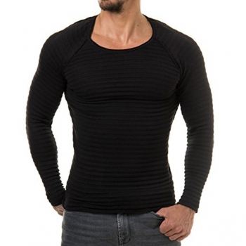 Fashion Round-neck Solid Color Long Sleeve Slim Fit Ribbing Men's Knitted Sweater