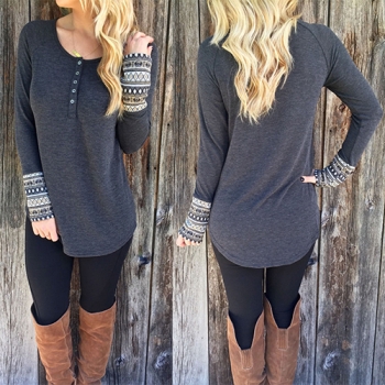 Fashion Scoop Neckline Long Sleeves Button-Front T-Shirt