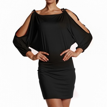 Fashion Sexy Solid Color Cold Shoulder Bandage Slim Fit Dress