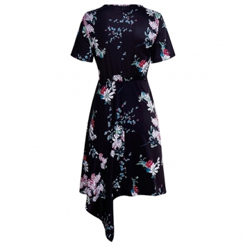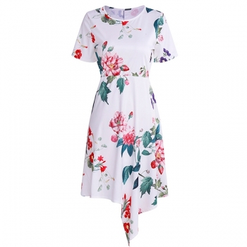 Fashion Short Sleeve Round Neck Irregular Hem Printed Dress