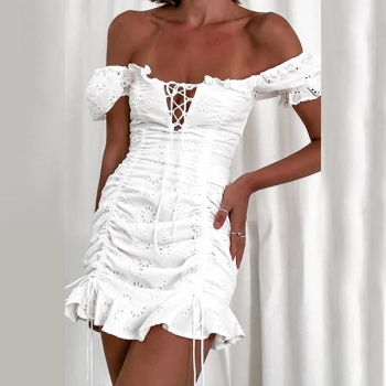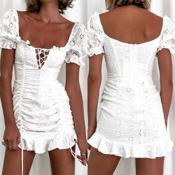 Fashion Short Sleeve Square Collar Ruffle Hem Slim Fit Dress