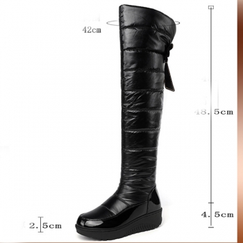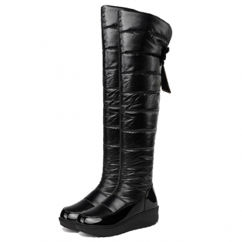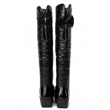 Fashion Side Zipper Back Bowknot Warm Plush Lined Quilted Wedge Boots