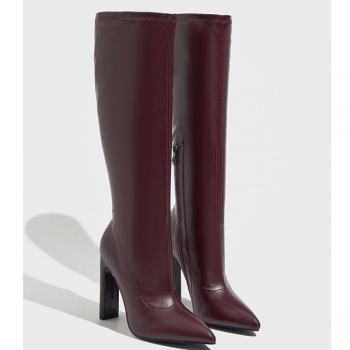 Fashion Side Zipper Pointed-toe High-heeled Artificial Leather PU Boots