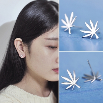 Fashion Silver-tone Maple Leaf Shaped Stud Earrings