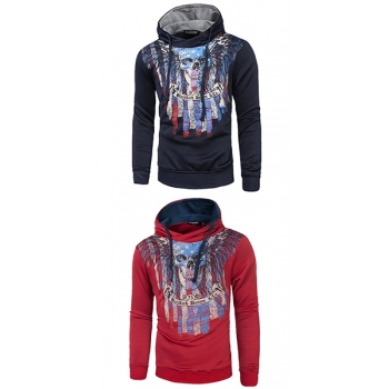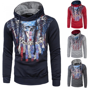 Fashion Skull Printed Hooded Long Sleeve Men's Sweatshirt