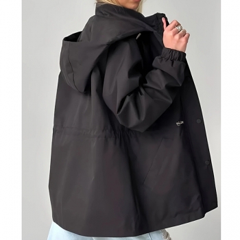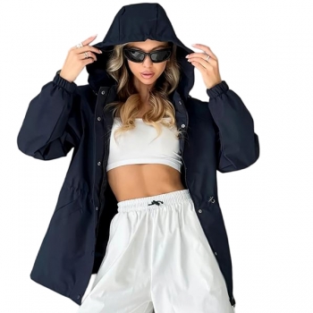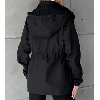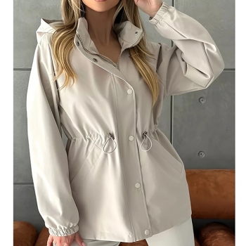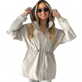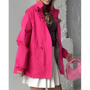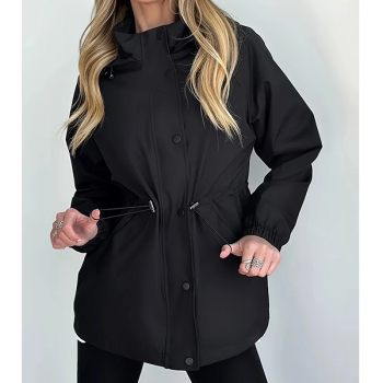 Fashion Solid Color Drawstring Waist Hoodie Waterproof Jacket