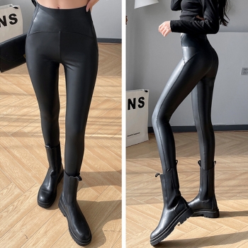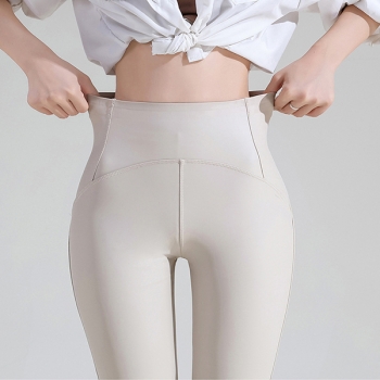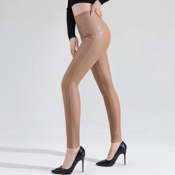 Fashion Solid Color High-rise Artificial Leather PU Skinny Leggings