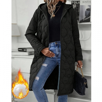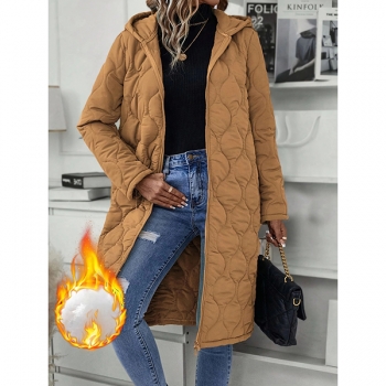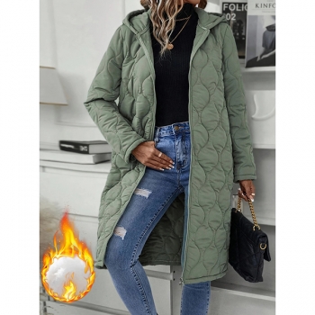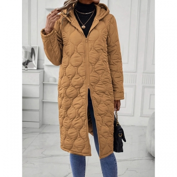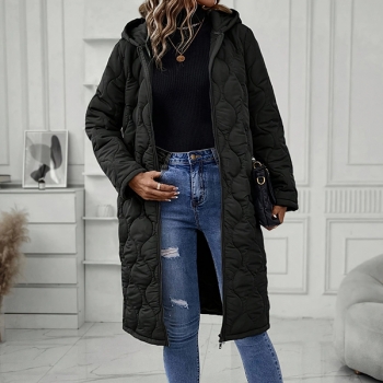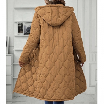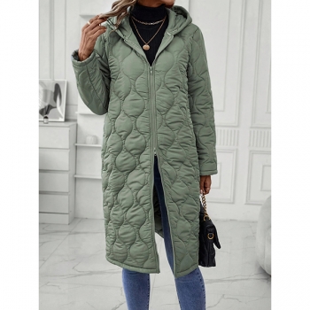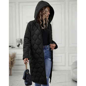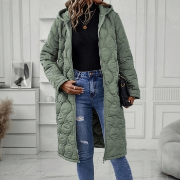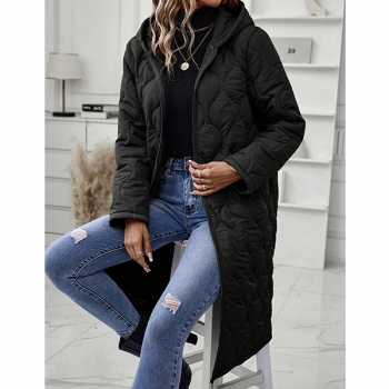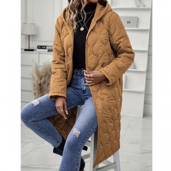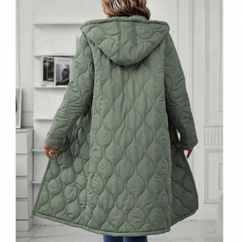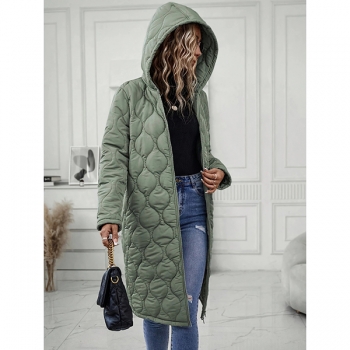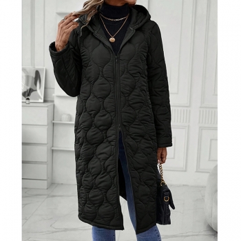Fashion Solid Color Hooded Long Sleeve Quilted Longline Jacket