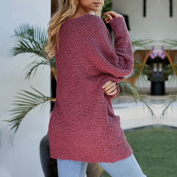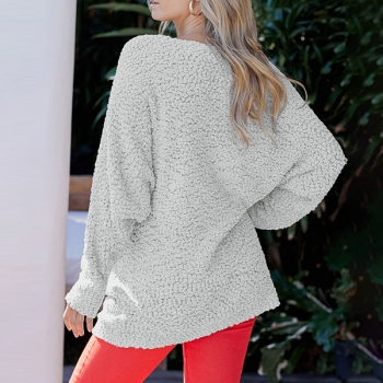 Fashion Solid Color Long Sleeve Round Neck Plush Top