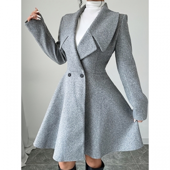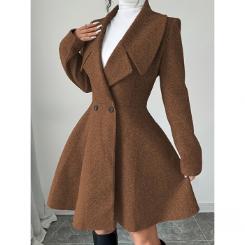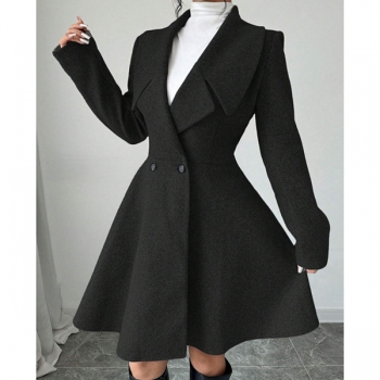 Fashion Solid Color Notch Lapel Long Sleeve Double-breasted Jacket