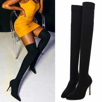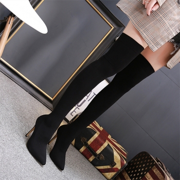 Fashion Solid Color Pointed-toe High-heeled Elastic Over-the-knee Boots