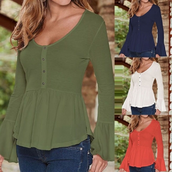 Fashion Solid Color Round Neck Bell Sleeve Tops