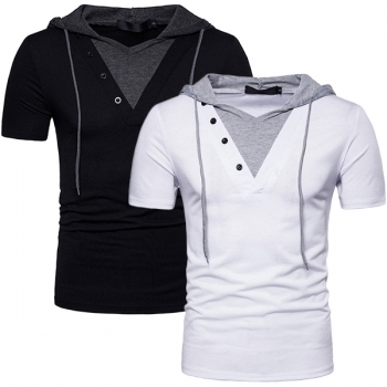 Fashion Solid Color Short Sleeve Cowl Neck Men's T-shirt