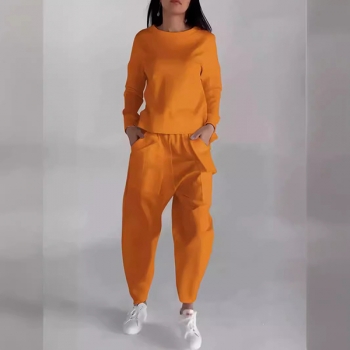 Fashion Solid Color Sporty Two-piece Set Consist of Sweatshirt and Sweatpants