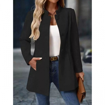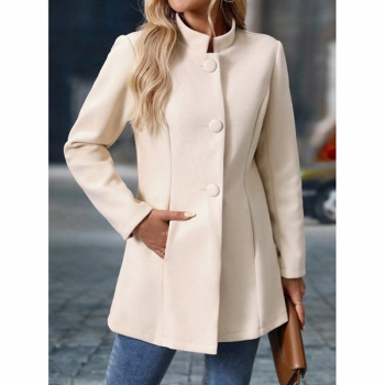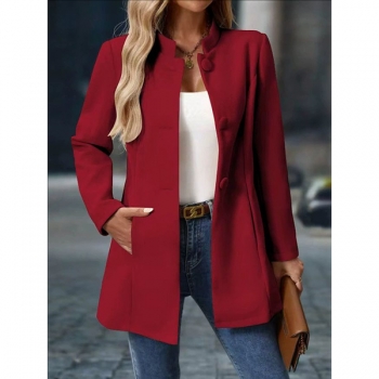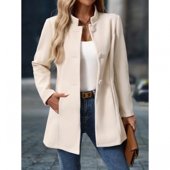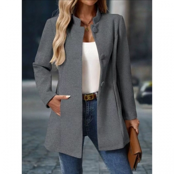 Fashion Solid Color Stand Collar Long Sleeve Front Button Jacket