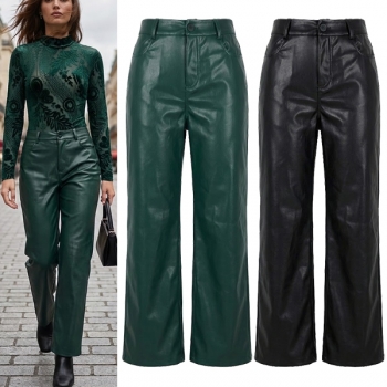 Fashion Solid Color Straight-cut Artificial Leather PU Pants