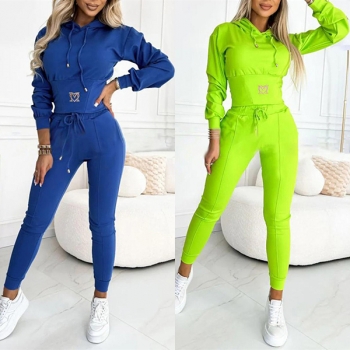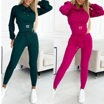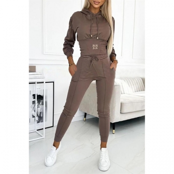 Fashion Solid Color Two-piece Set Consist of Hoodie Sweatshirt and Drawstring Sweatpants