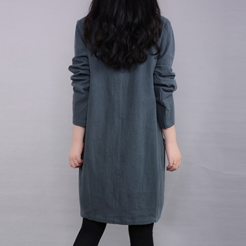Fashion Solid Color V-neck Long Sleeve Loose-fitting Dress