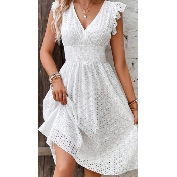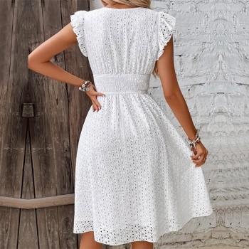 Fashion Solid Color V-neck Ruffle Sleeveless High-rise Hollowout Mini Dress