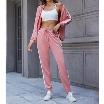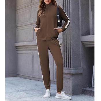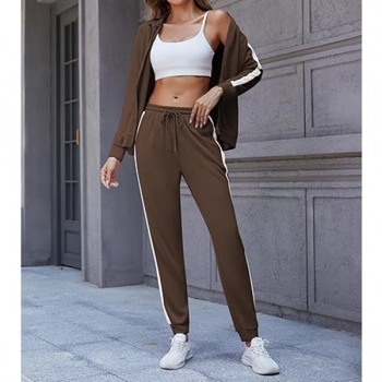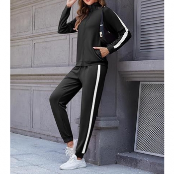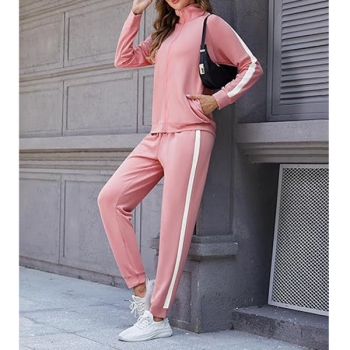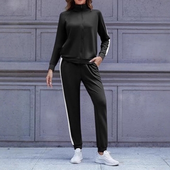 Fashion Sporty Side Stripe Printed Two-piece Set Consist of Sweatshirt Jacket and Sweatpants